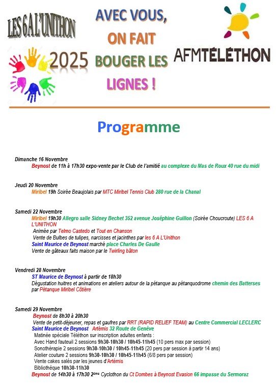Retrouvez tout le programme des 6 A L'UNITHON !