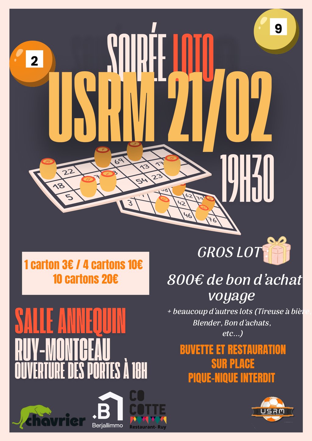 à 19h30 ouverture des portes à 18h